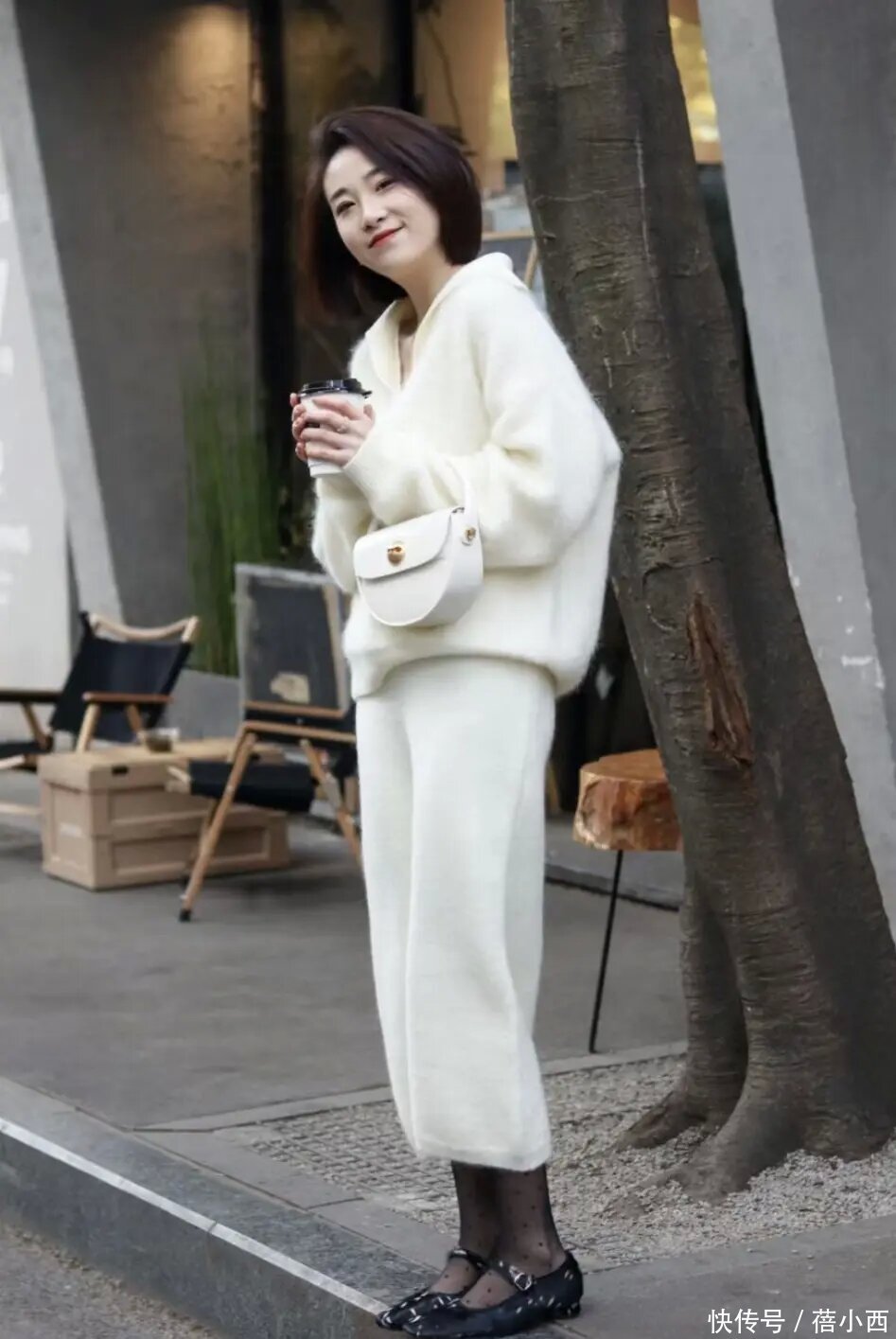 当澄澈的奶白色真诚套装穿上身,不错让咱们在萧索的冬日里成为街头的焦点,用这么一抹白色去转去别东说念主的视野,再通过白色的真诚套装和玄色的玛丽珍鞋相网络,展现出双重魔力。